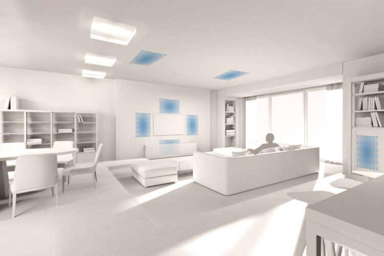 Systém neviditelných reproduktorů LoftSonic musí výrobce do vizuálů vyznačovat, jinak jej nenajdete, zdroj: loftsonic.de
