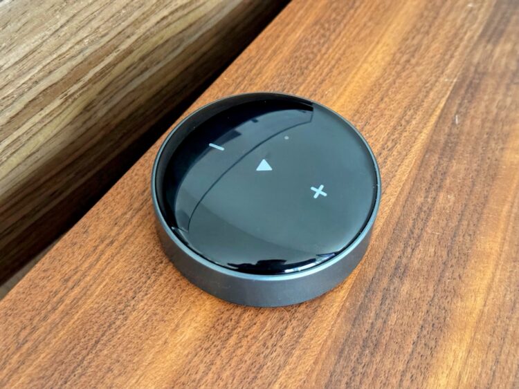 WiiM Mini mě po vytažení z krabičky překvapil. Je to opravdu drobeček jak velikostí tak i svou váhou. Rozměry jsou 6,4 x 6,4 x 2,4 cm. A váha? Pouhých 40 gramů, za což samozřejmě může využití převážně plastového materiálu. I přes tyto rozměry nabízí streamer na horní straně tlačítka pro ovládání. Konkrétně pro zvýšení a snížení hlasitosti a spuštění přehrávání.