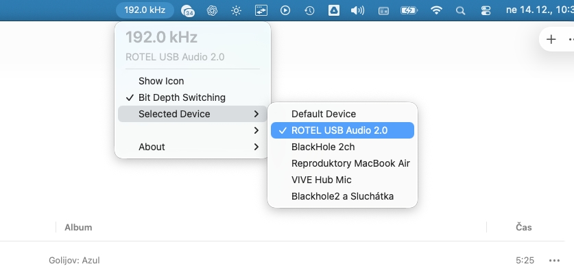 Tahle malá aplikace sedí v horní liště, sleduje, co Apple Music právě hraje, a „násilím“ přepíná systémovou frekvenci v Audio MIDI nastavení tak, aby odpovídala skladbě. Najednou na svém DAC uvidíte správnou frekvenci a uslyšíte výrazně lépe to, co ve skladbě skutečně je.